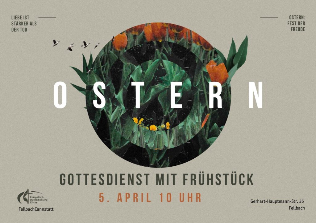 Herzliche Einladung zu unserem Familiengottesdienst an Ostern. Wir feiern miteinander die Auferstehung Jesu. Wir feiern miteinander, dass das Licht stärker ist, als die Dunkelheit, dass die Liebe stärker ist als der Tod. Im Gottesdienst integriert wird es ein kleines Frühstück geben. Der Gottesdienst beginnt am Ostersonntag um 10 Uhr in der ChristusKirche, Fellbach (Gerhart-Hauptmann-Str. 35).