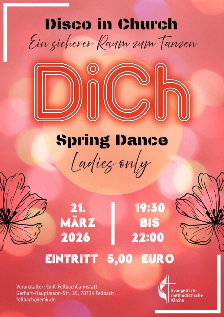 Alle Frauen sind am Sa. 21. März von 19:30 – 22:00 Uhr zum Tanzen in die ChristusKirche Fellbach eingeladen. Der Eintritt beträgt 5 Euro.